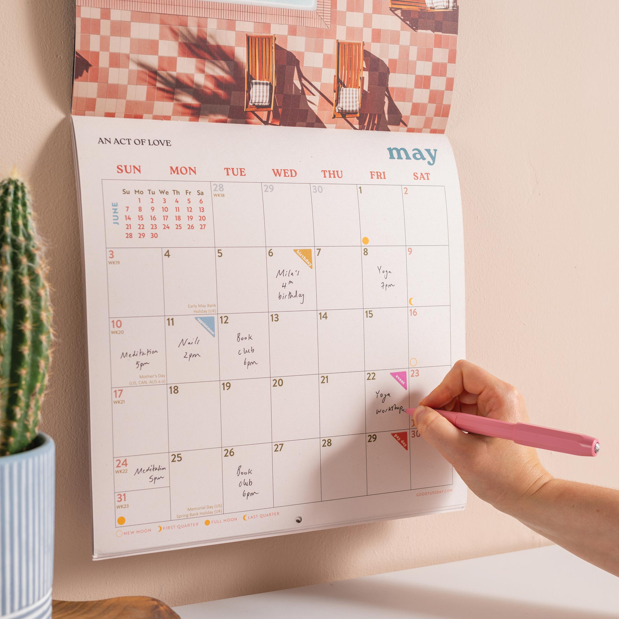 The layout runs from January to December 2026, with a spacious month-to-view grid, with the week starting on Sunday. Easy to use, easy to read, with plenty of space for birthdays, appointments, and the rituals that keep you grounded.