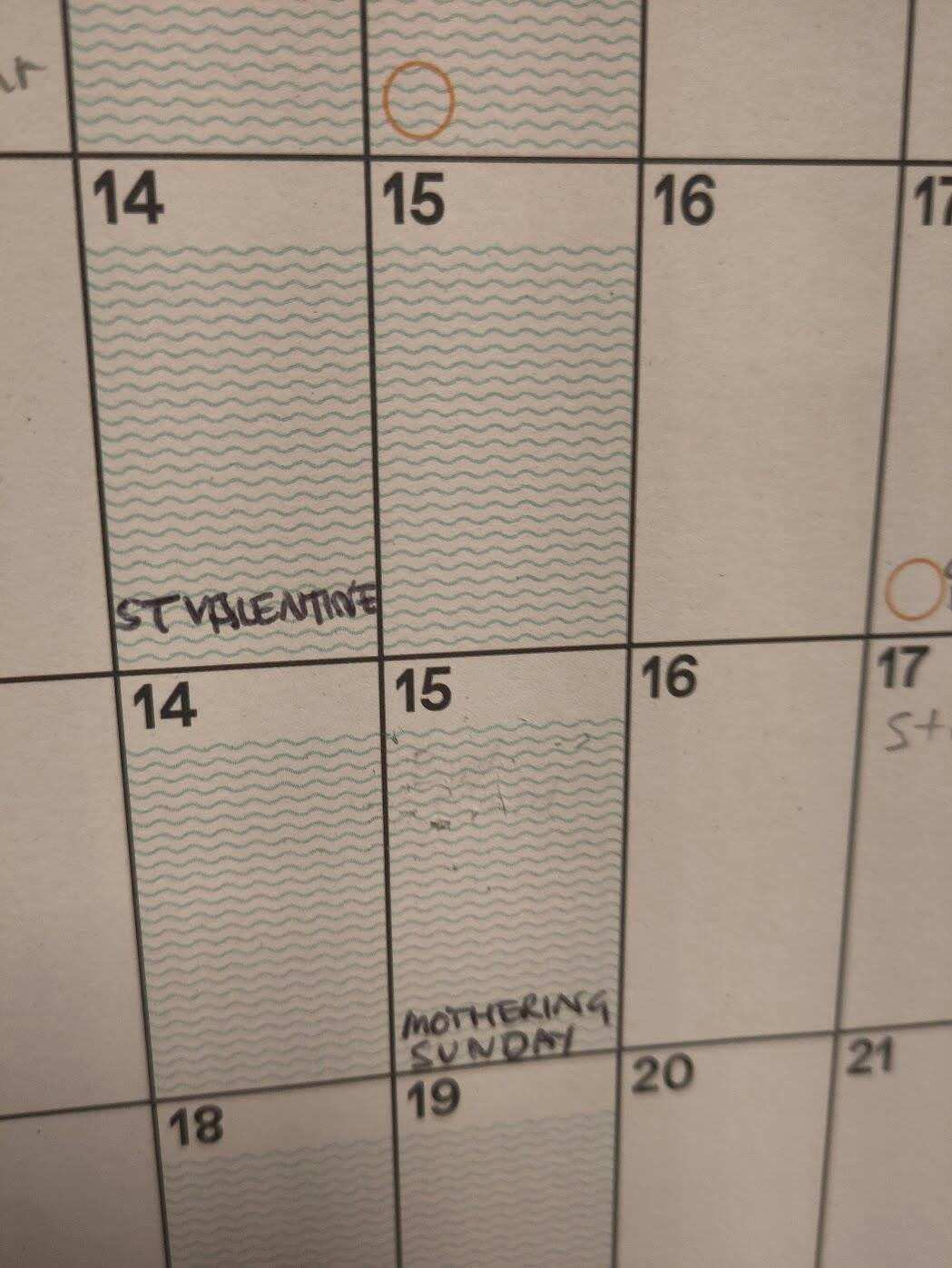 • Size of individual date boxes: 1.9 x 3.6cm / 0.8" x 1.4"