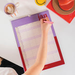 This modern, bold design Family Calendar is a nod to trending fashion and interior design. Strong modern colour contrasts in deeply delicious and retro-inspired palette.
