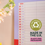 This A3 family planner runs from January to December 2026, with a 5-column monthly layout to keep busy households, shared flats, and packed schedules in check.