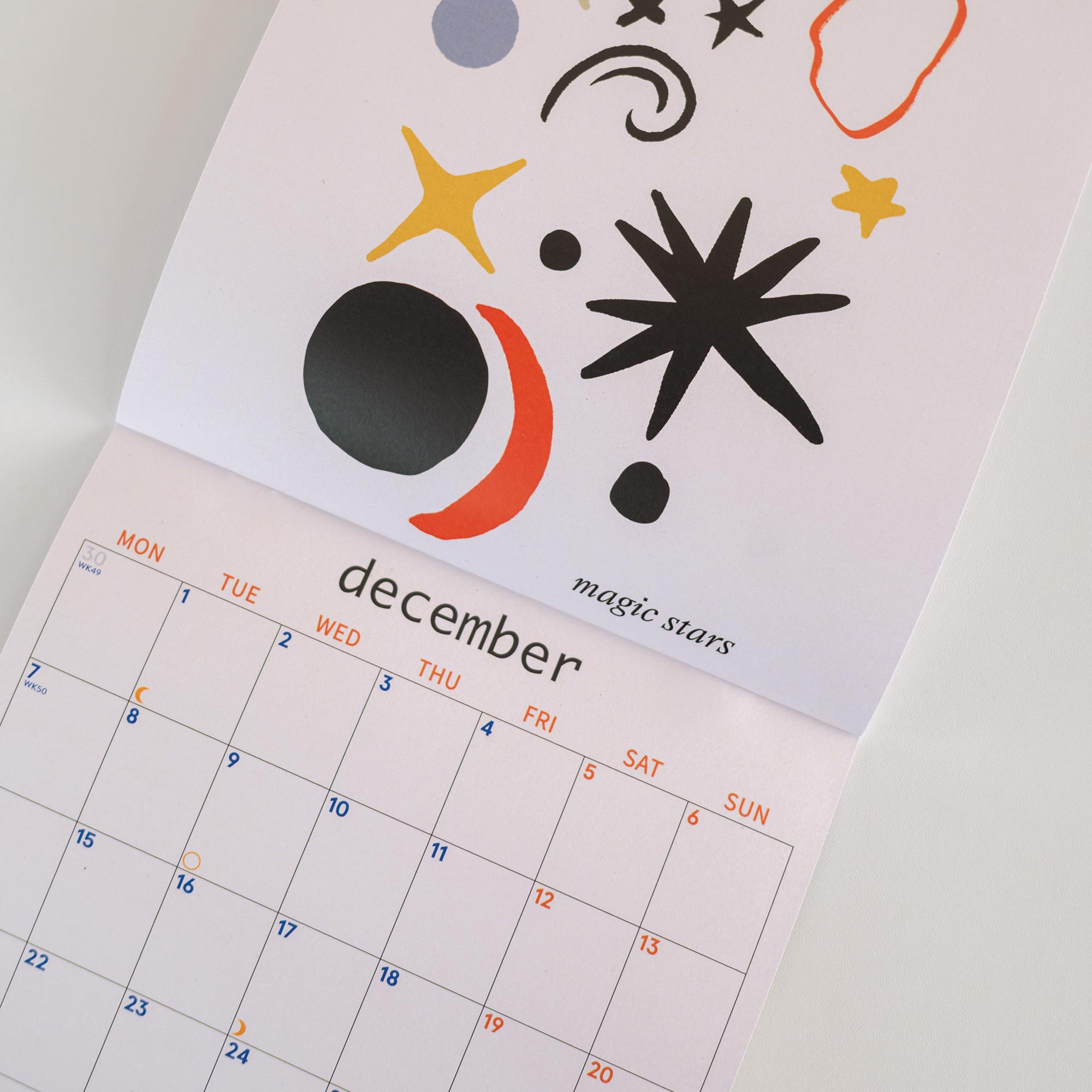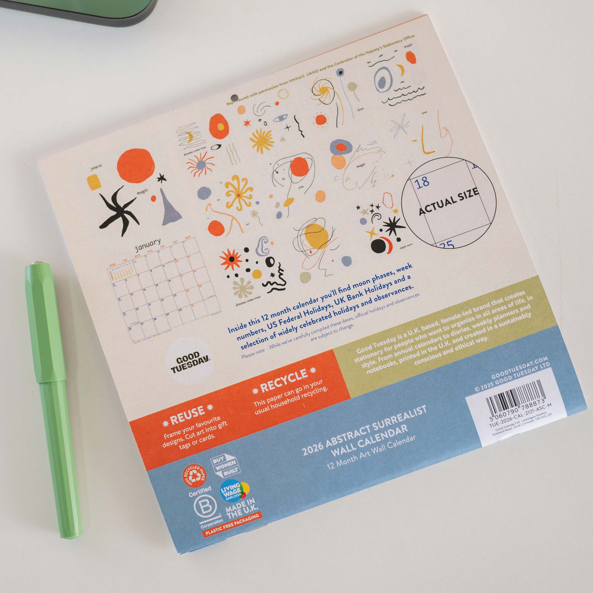 A 2026 compact calendar for modern art fans, inspired by the surrealist works of Joan Miró. Each month brings bold, abstract shapes and playful colour – a mix of organic lines, stars and forms that feel spontaneous and full of energy. Paired with a simple grid for your plans, it’s art you’ll use all year.