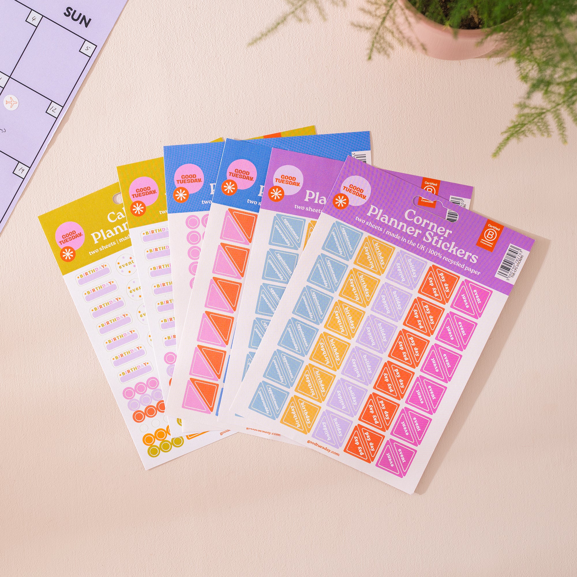 The Corner Sticker sheets come with 120 stickers and help you to mark important dates while leaving you room to write in the deets.