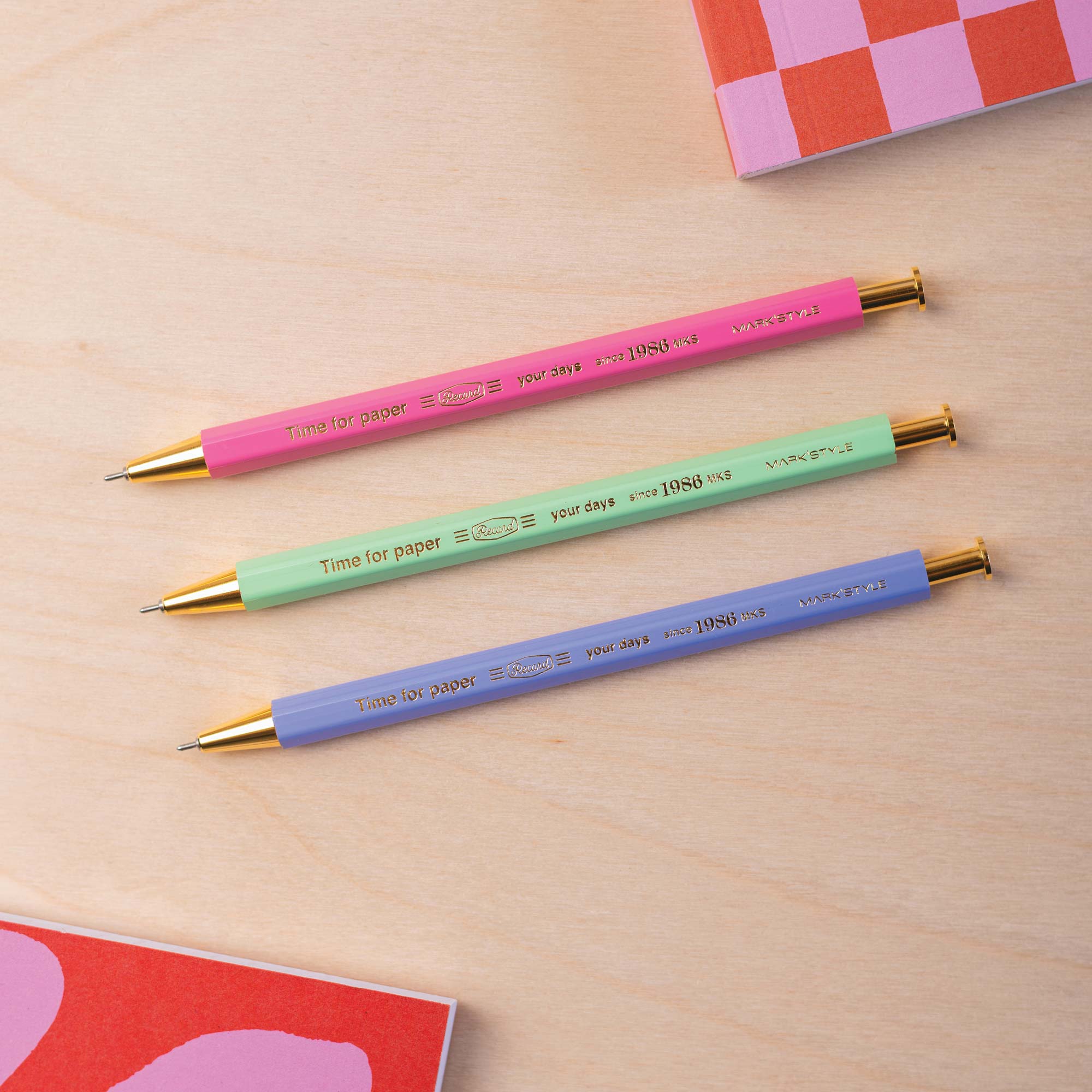 Pack of Three Pastel Time for Paper Gel Ballpoint Pens | Refillable