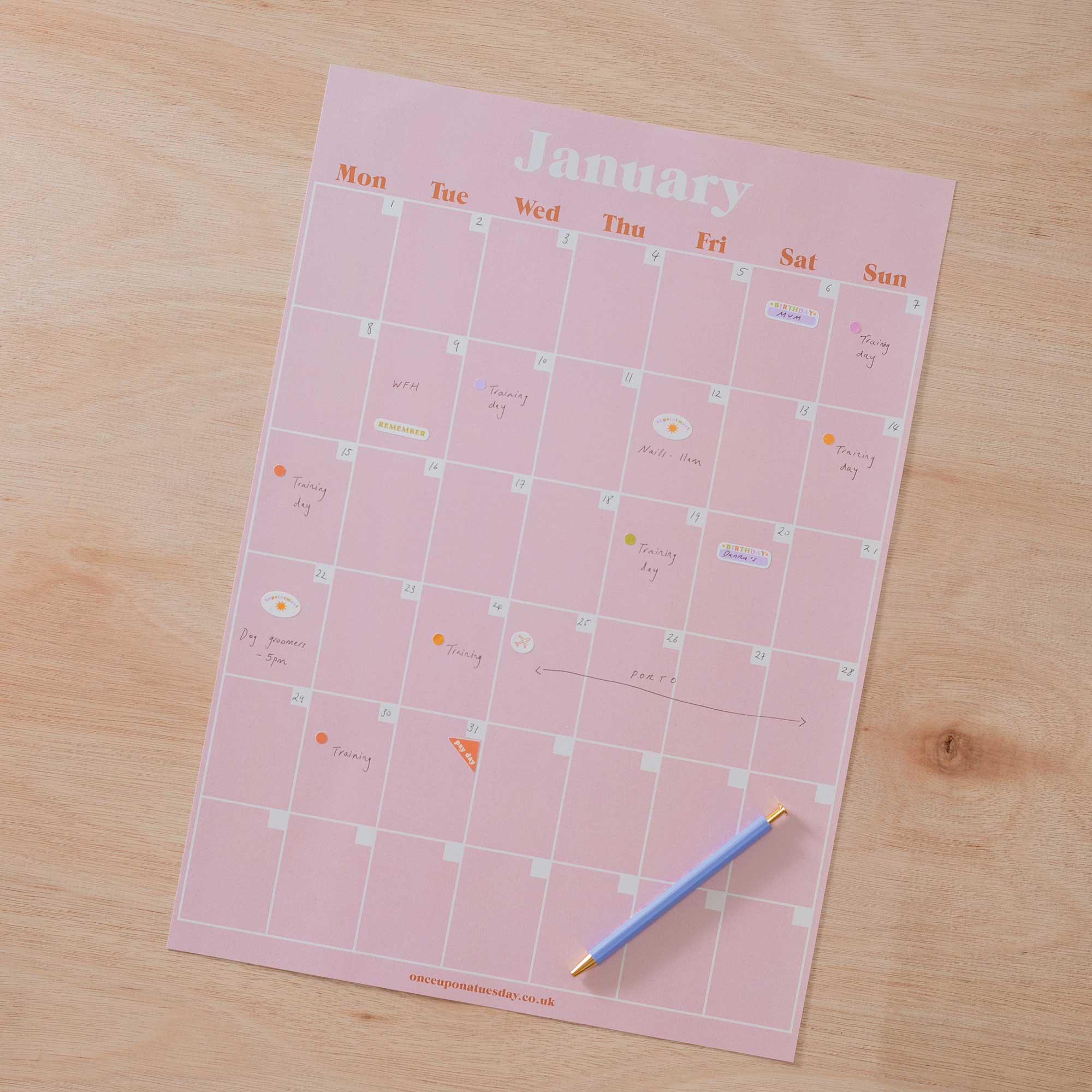 Large Monthly Undated A3 Wall Planner | 12 Pages | Pastels