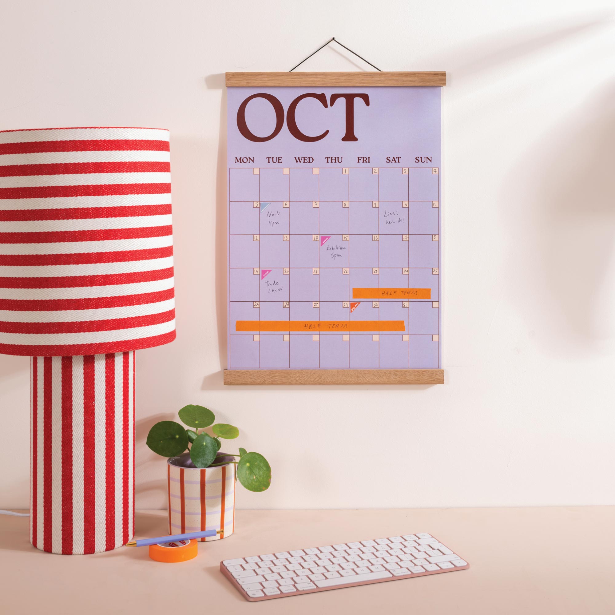 Boho scandi style undated A3 wall planner displayed on wall with muted colour palette