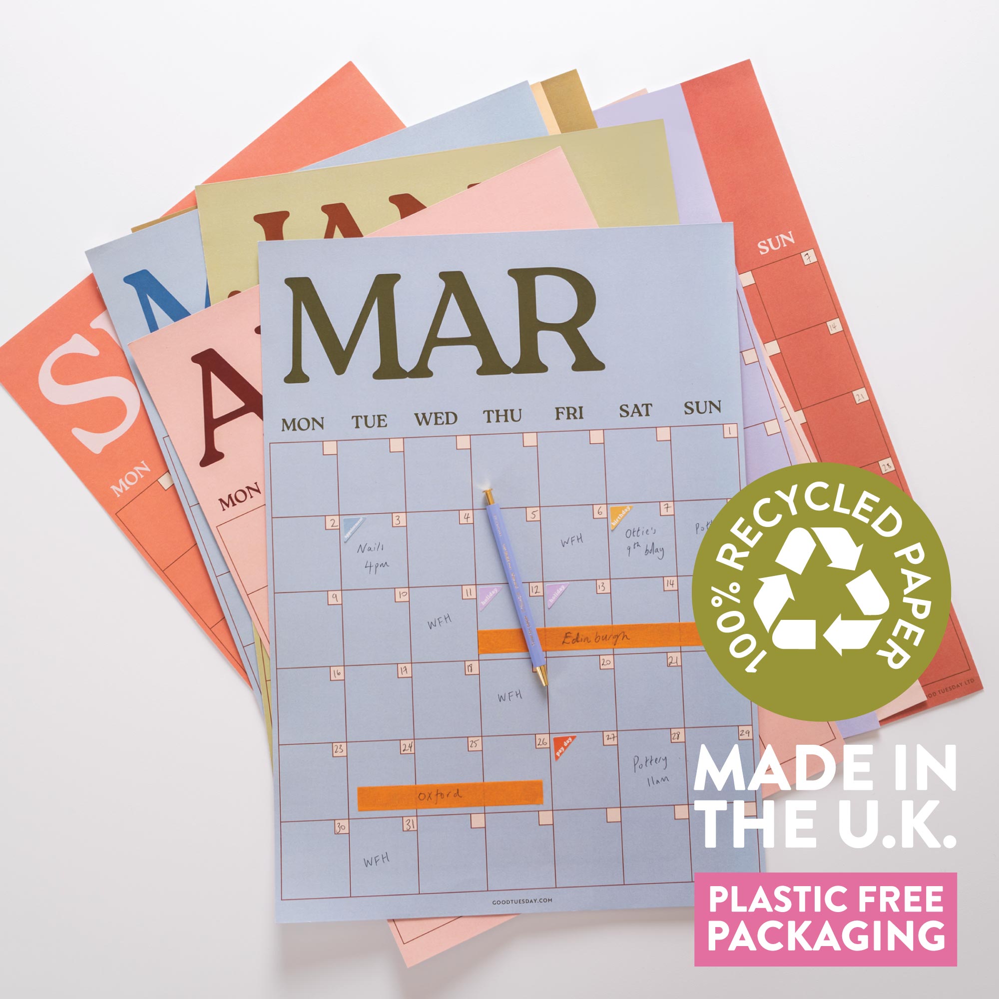 A calendar that works around you, not the other way around. Undated and unbound, you can start on any month, no need for a big start-of-year planning session, slot it into your planning ecosystem whenever it suits you.