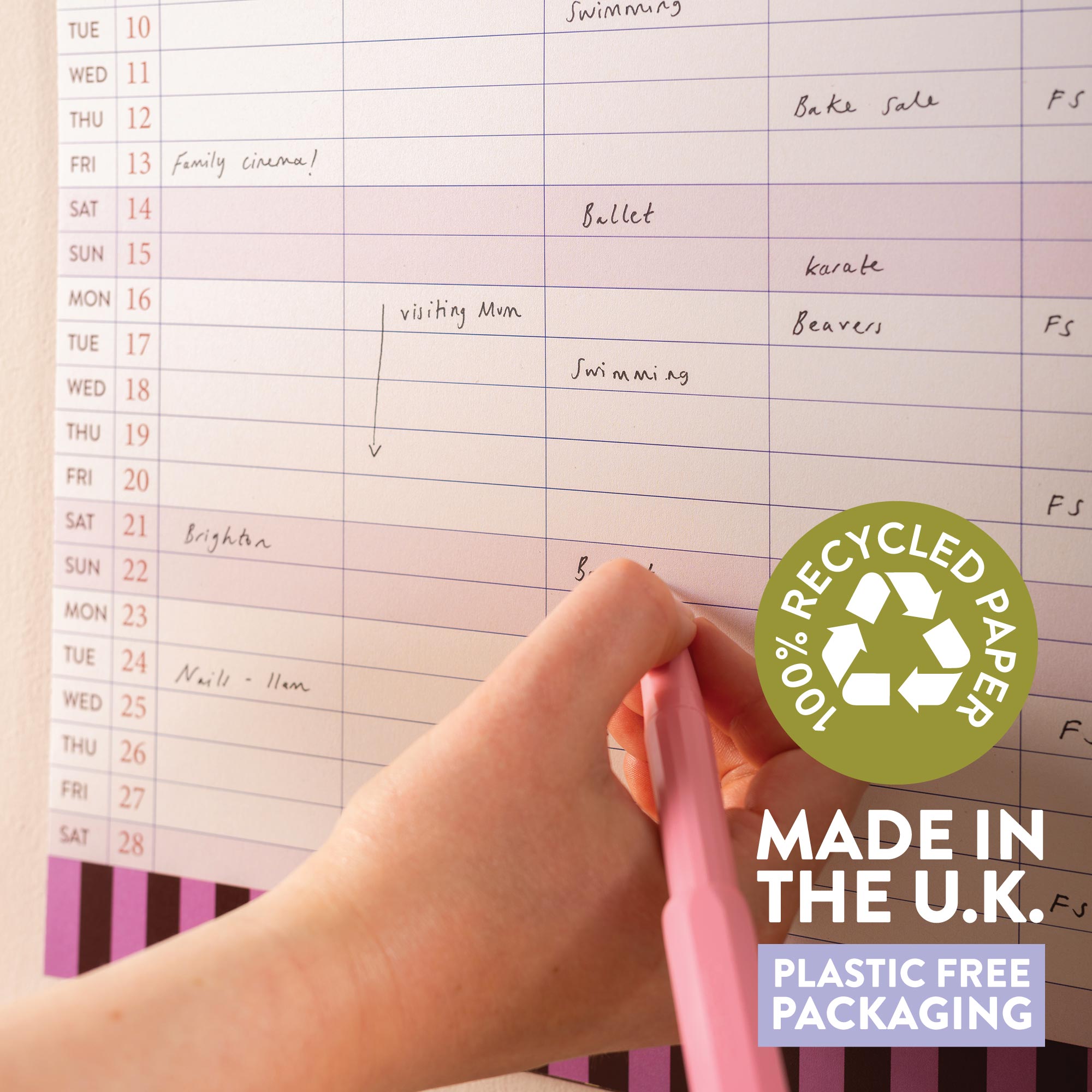 A collection of stationery for parents, designed by a parent. Find the popular stylish Large A3 size family calendars here. They feature 5 columns for each family member, and I am not sure how any household goes without them.