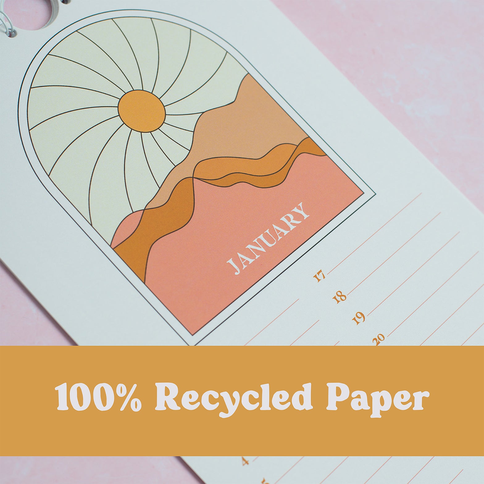 Add a little boho vibe to your walls with this hanging birthday calendar. Each page features a stylised landscape illustration in warm, earthy colours.
