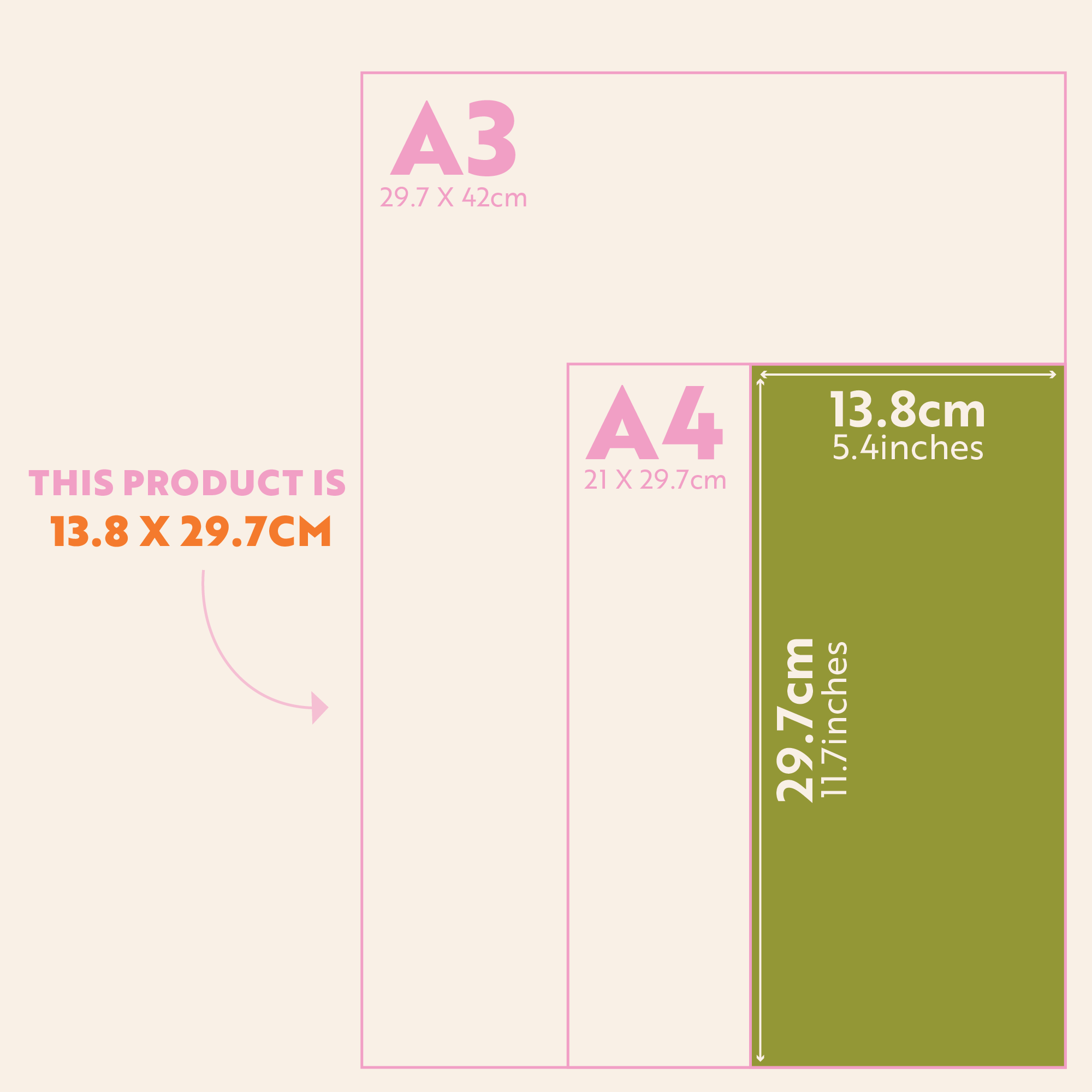 - Size: 13.8 x 29.7 cm // 5.4 x 11.7 inches