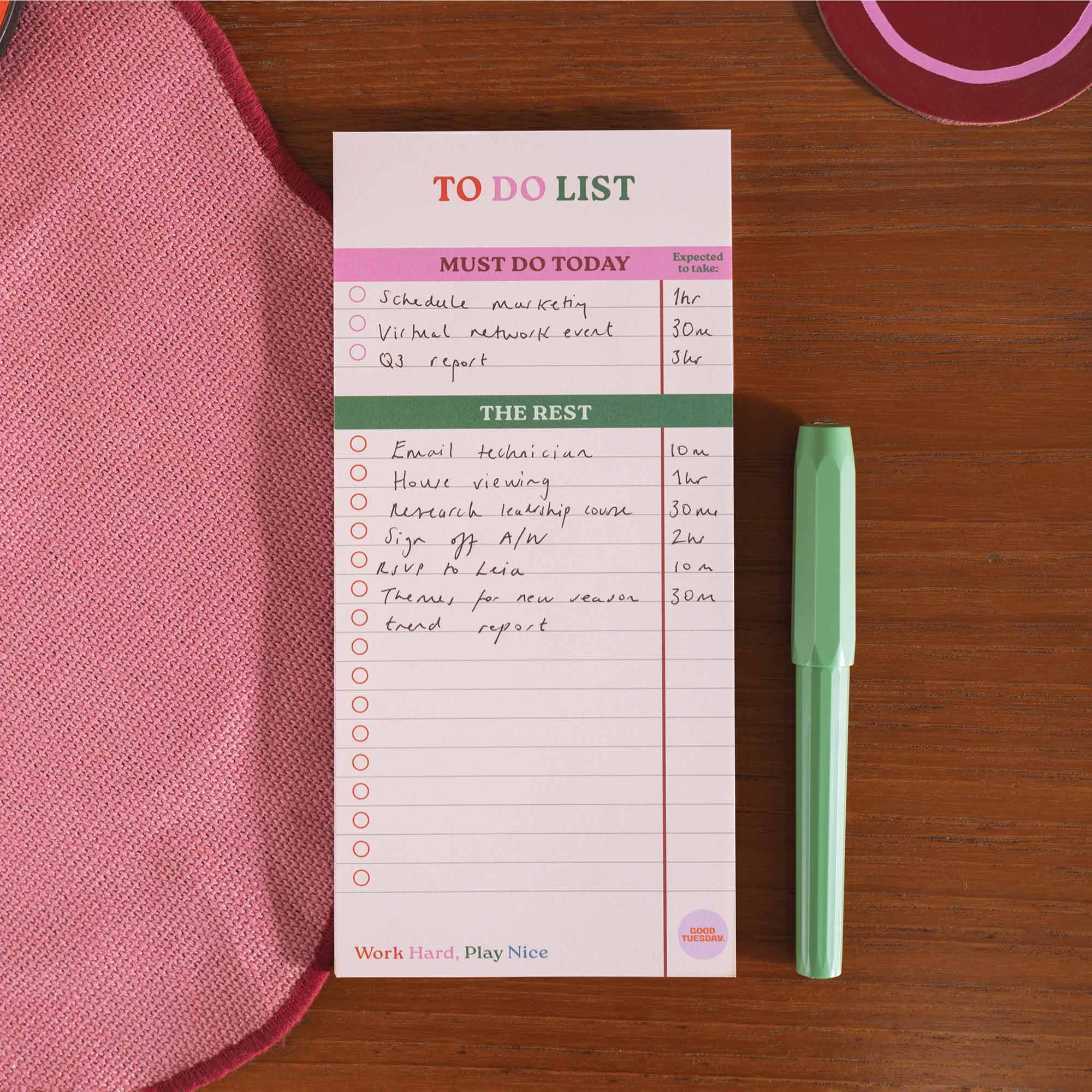 Take on daily tasks with the Work Hard Play Nice to-do list planner pad—bold, cheerful, and designed to bring a splash of colour to your day.