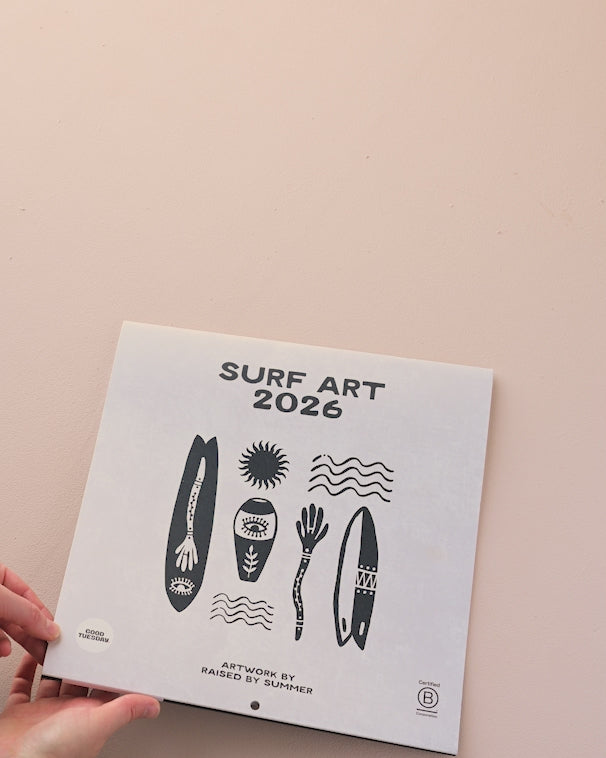 Stoked to share the NEW surf-inspired planner for 2026. This large wall calendar features hand-drawn surf art by Belgian illustrator Jovi Cauwels, aka Raised By Summer on Instagram.