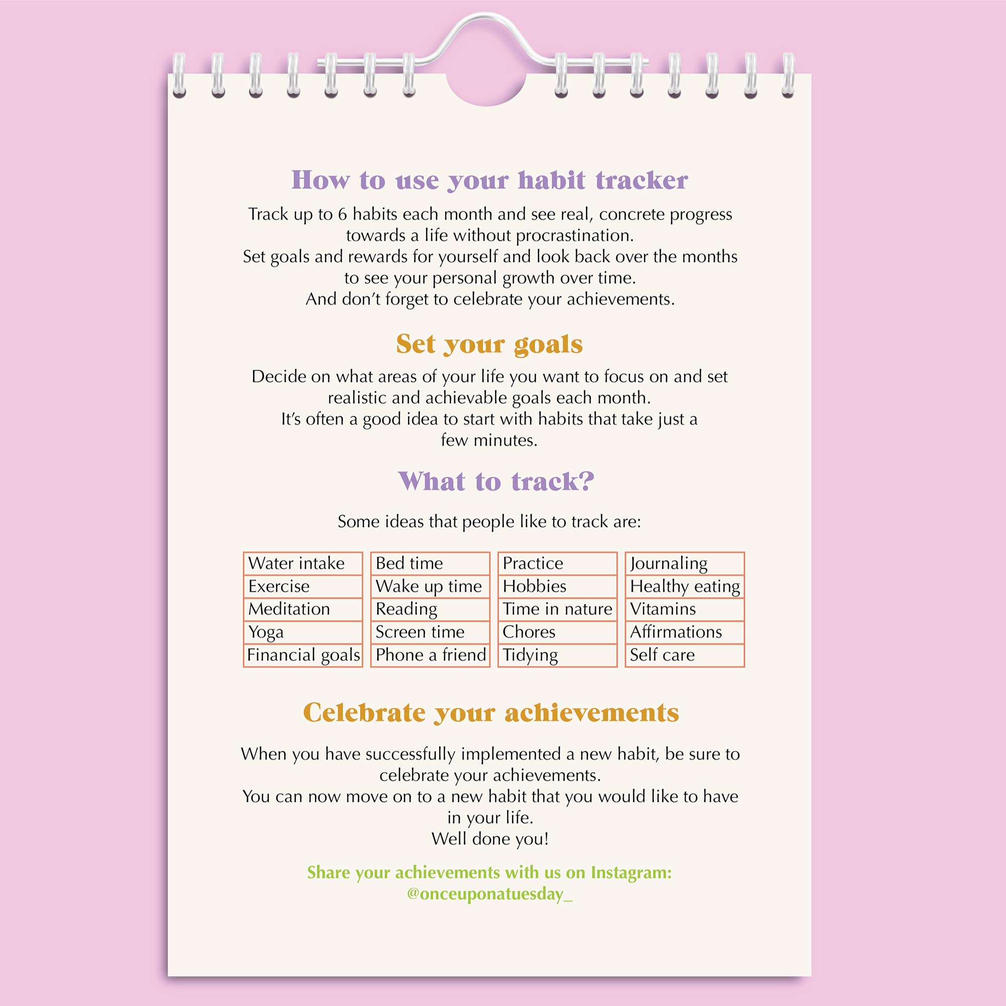 If you’re not sure where to start, the habit tracker features a guide with ways to use the planner and ideas on what habits to track.