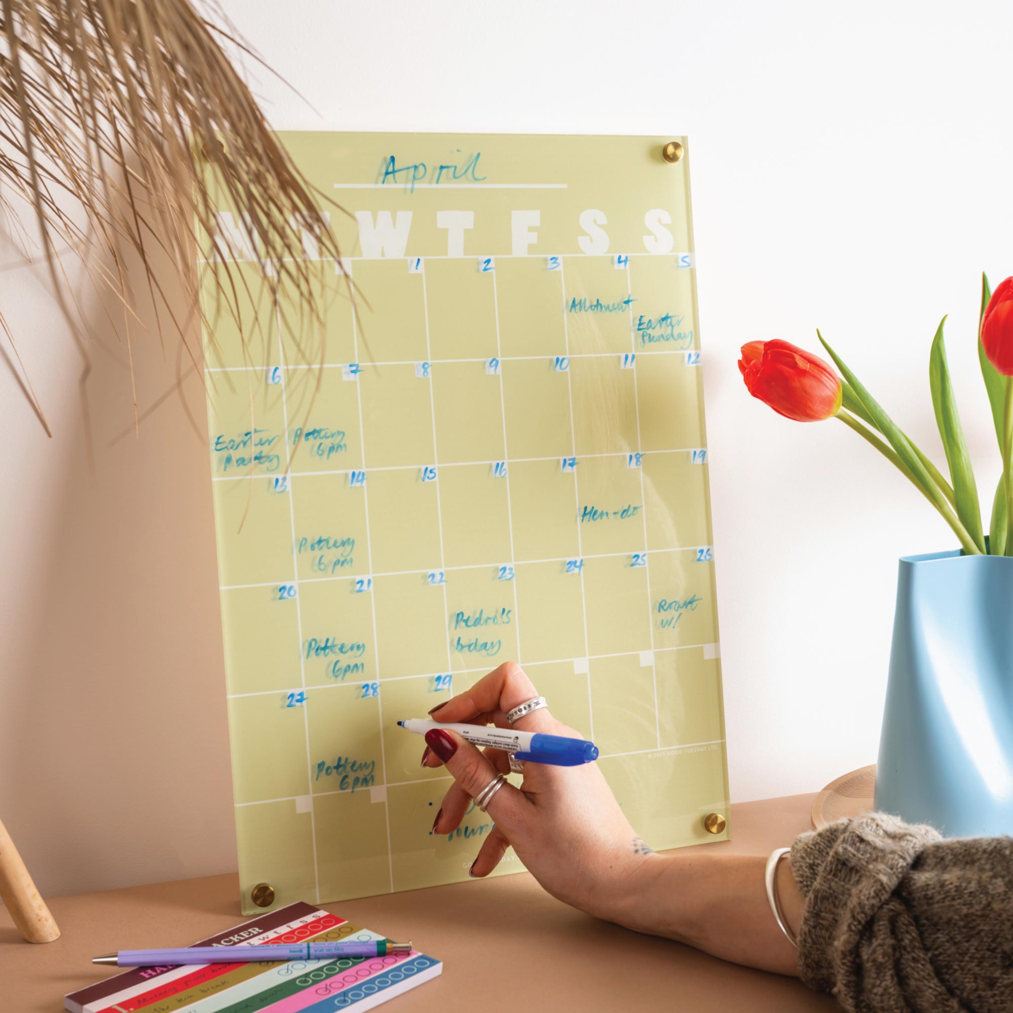 This wipeable A3 acrylic planner keeps all your dates, deadlines, and plans in one deliciously stylish place. Hang it where you’ll see it, jot down what matters, wipe it clean, start fresh, month after month. (Cause who wants an ugly whiteboard in the kitchen?)
