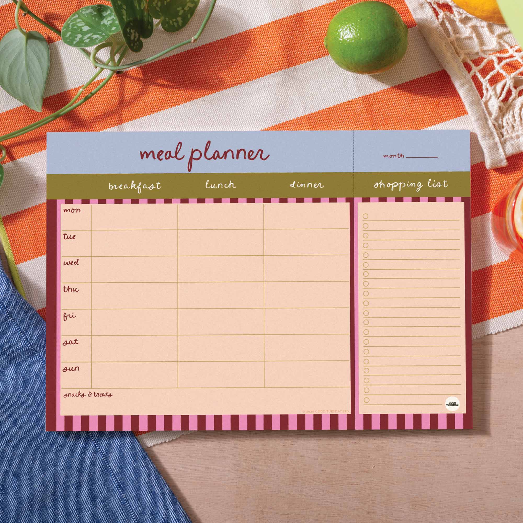 A4 Weekly Meal Planner Pad | Berry Stripe