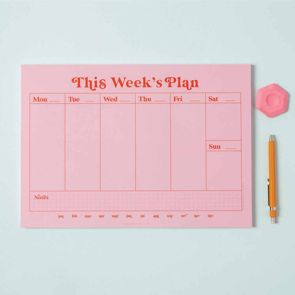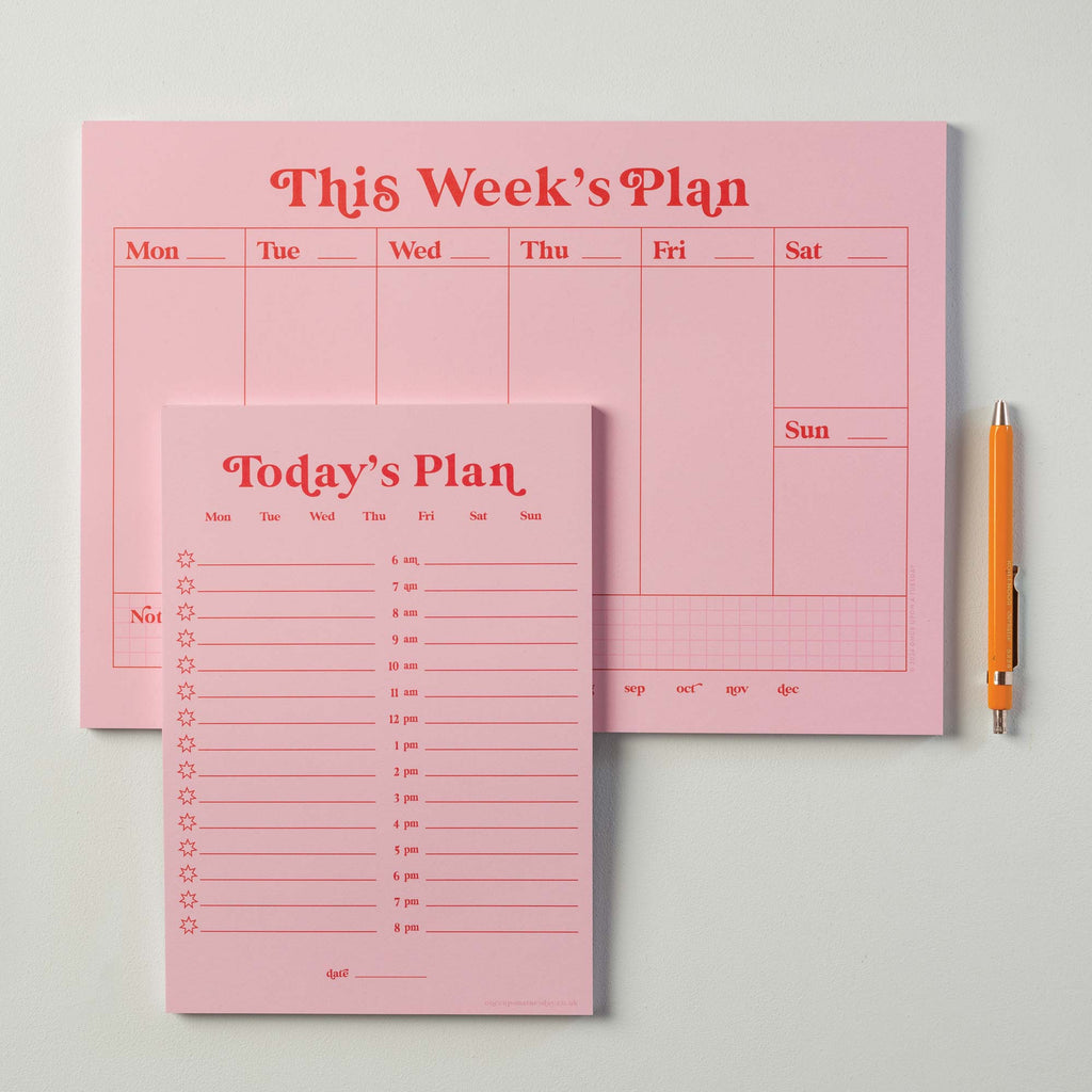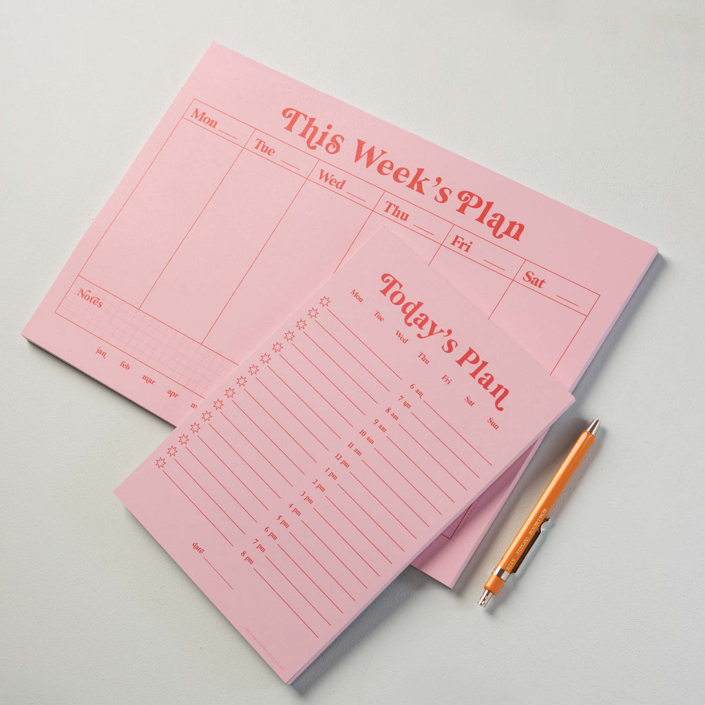 Time to get organised with this bold, pink and red planner pad set - the joyful design will bring a touch of Wes Anderson design style to your desk vibe. Create a full week's plan and jot down the finer details in the daily planner.
