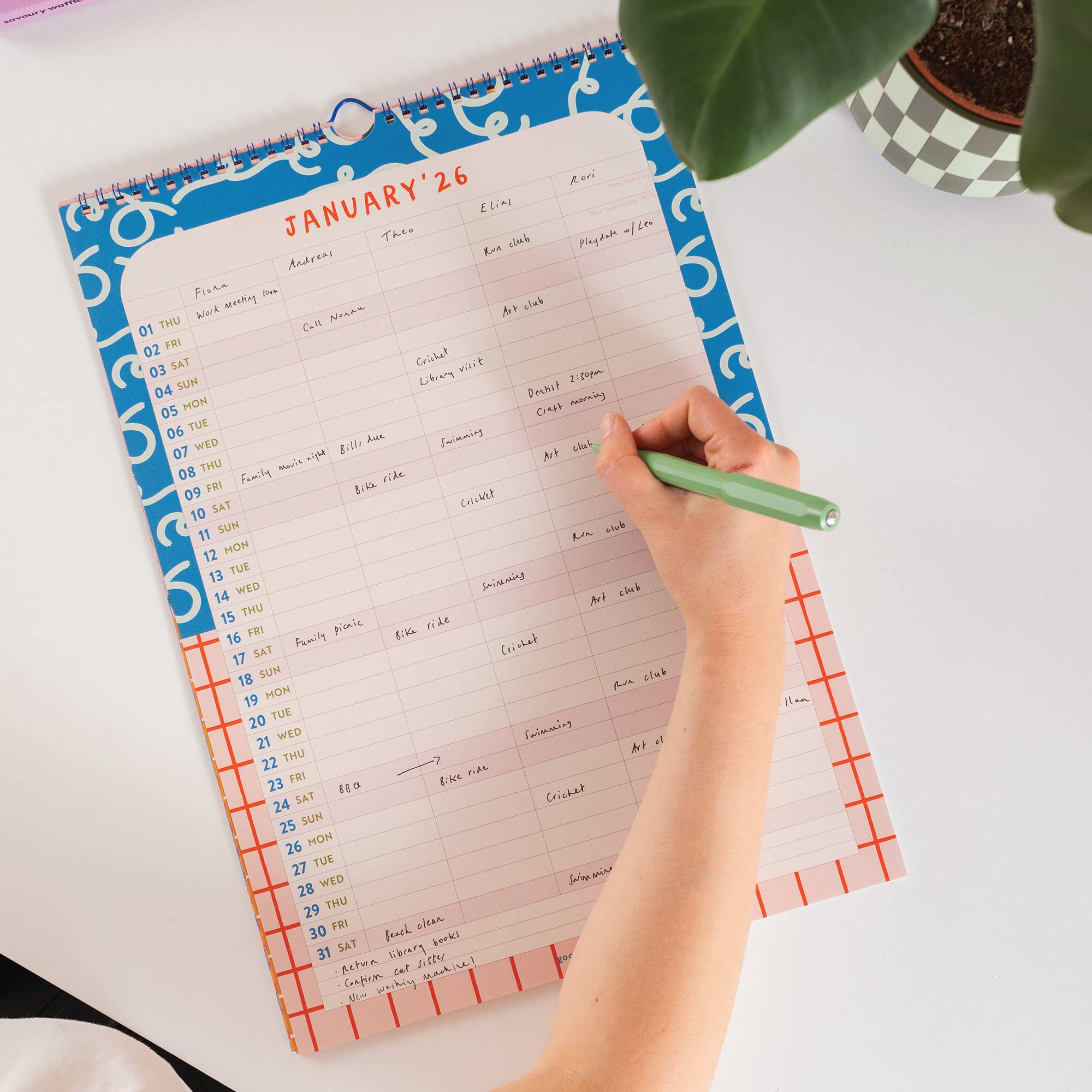This A3 planner runs from August 2025 to July 2026 and is designed to bring a bit of calm to the chaos. With five columns across each monthly spread, there’s space for every family member, housemate, or area of life—so you can actually see what’s going on.