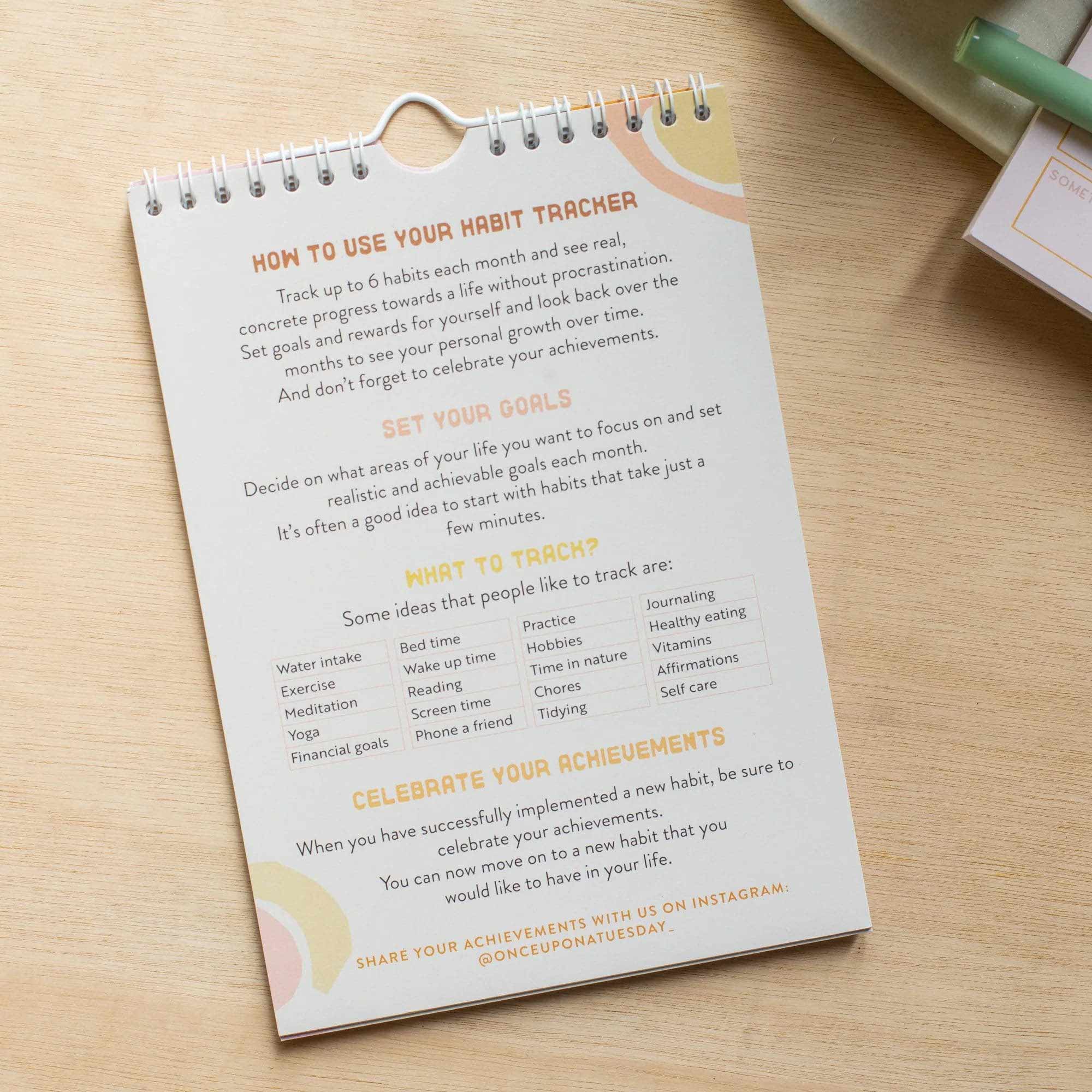 Each month, choose 6 habits you want to build into your routine and track them on this handy ring-bound A5 notepad that can also be hung on a hook.