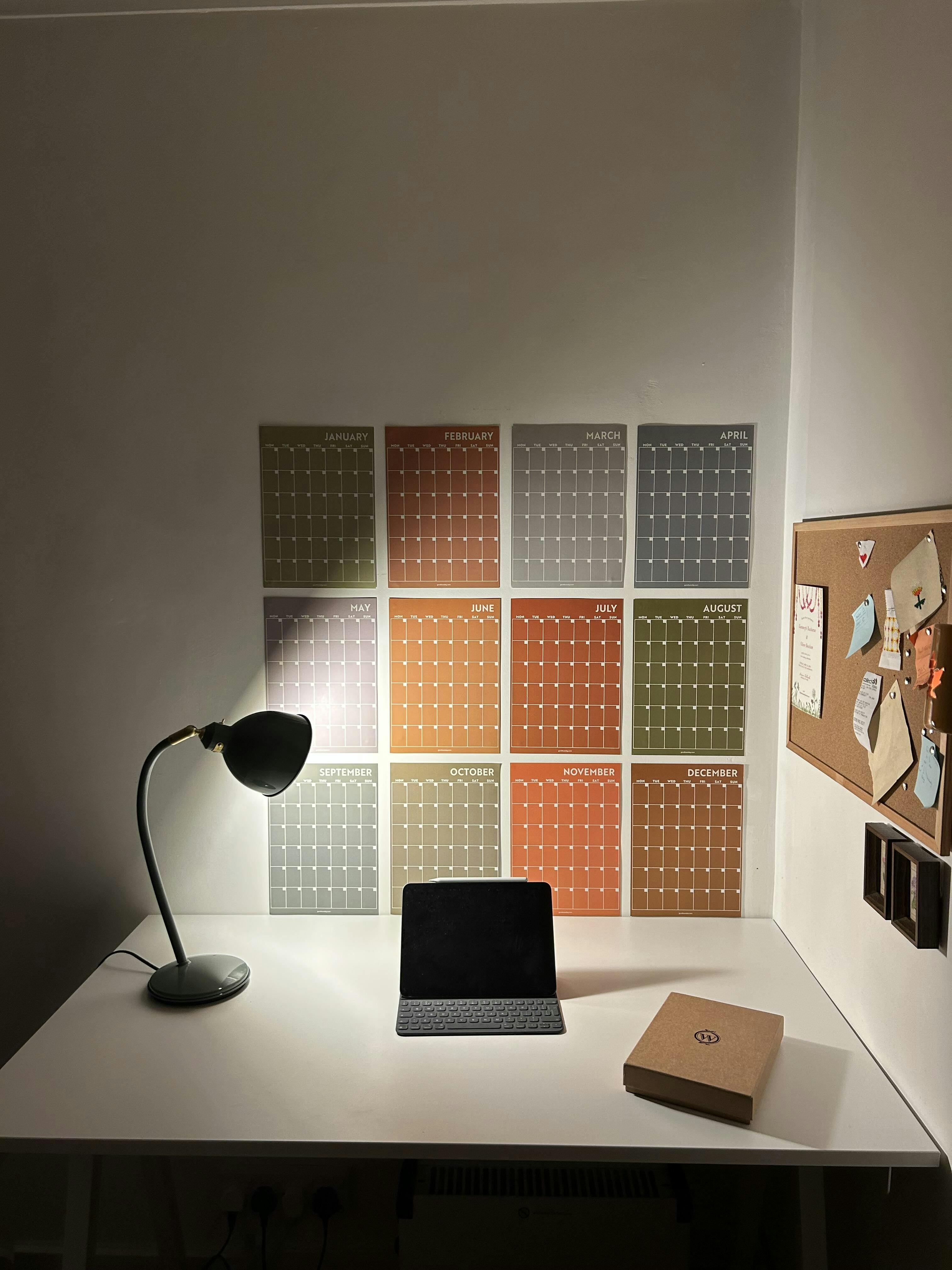 An unbound A4 sized calendar which you can hang all at once to create a full year wall planner, or hang one or a few months at a time.